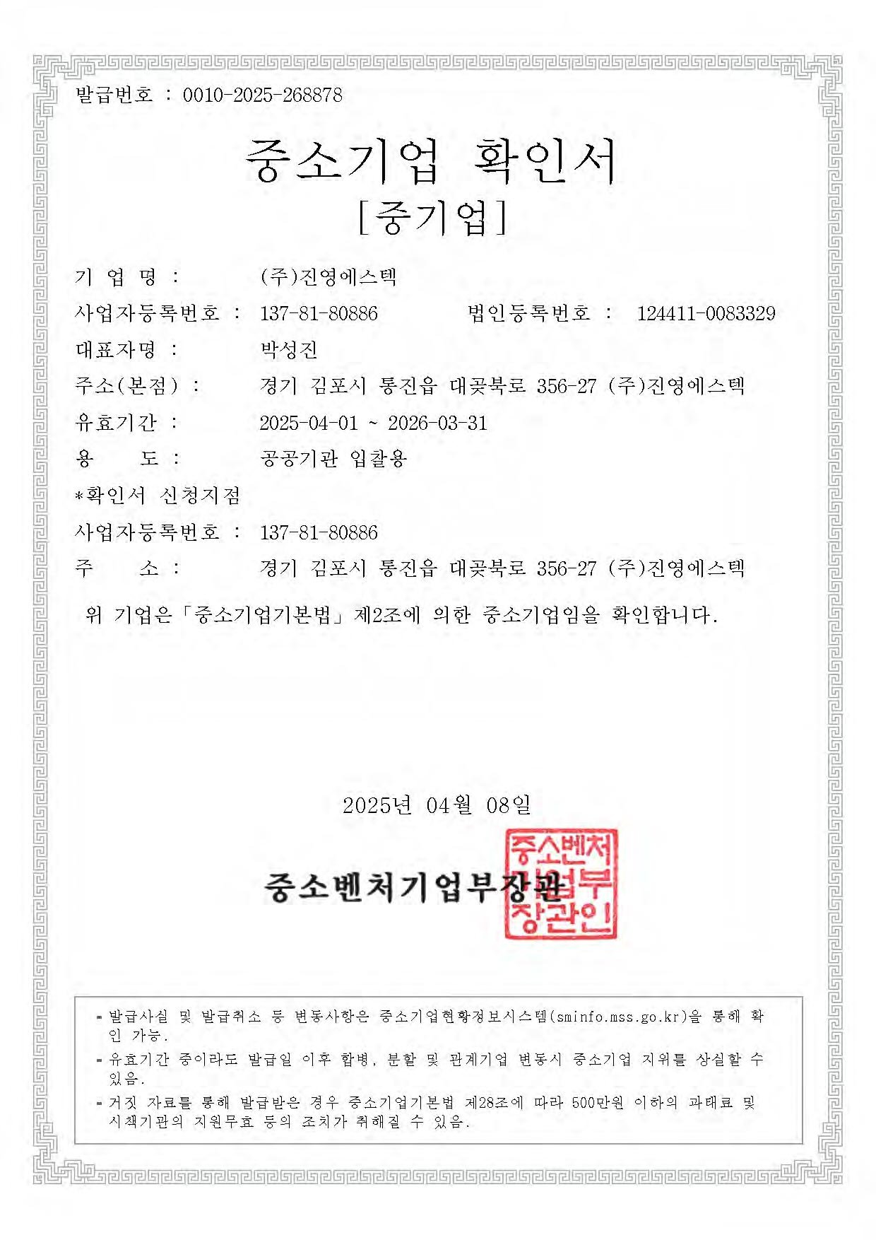 중소기업확인서