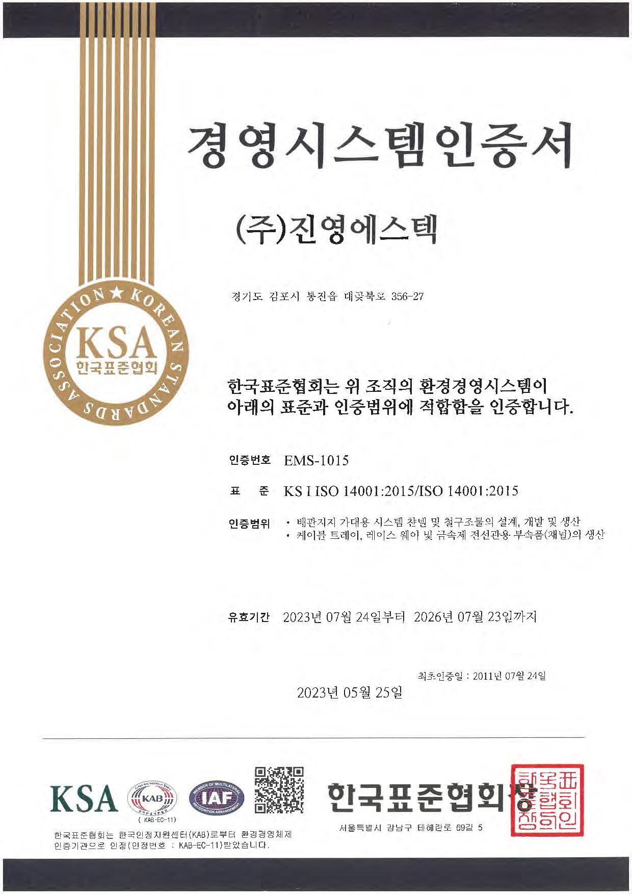 KS인증서 제25-0015호