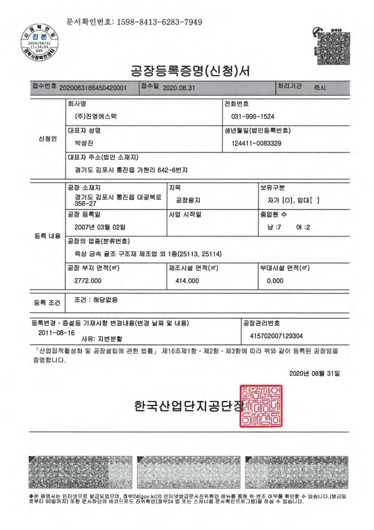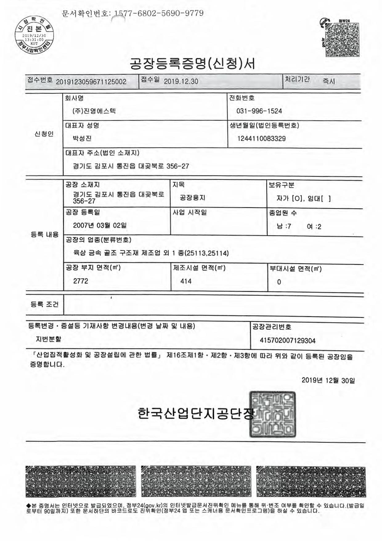 공장등록증2020