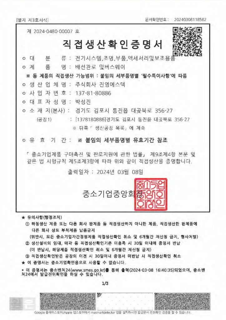 직접생산확인증명서