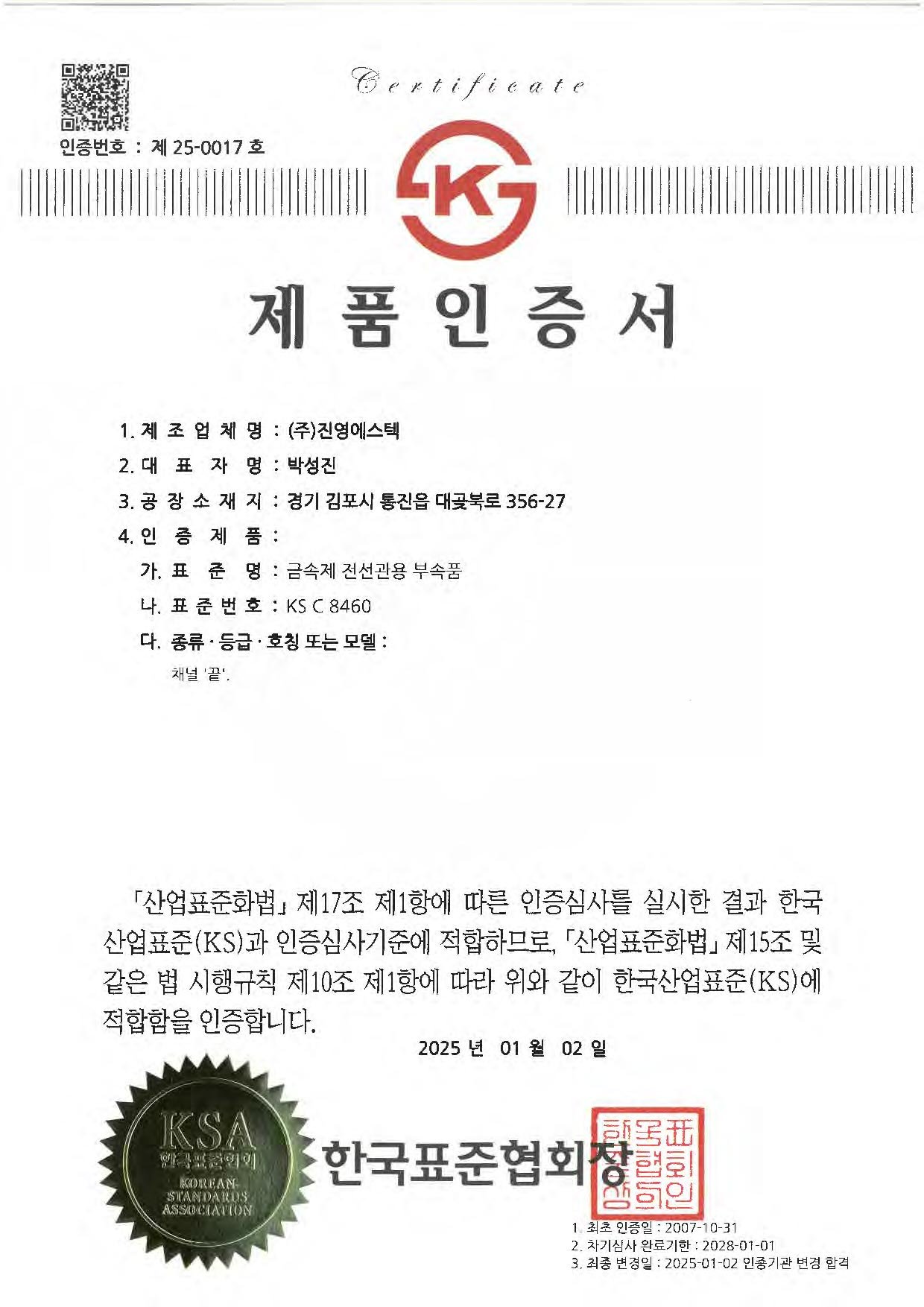 KS인증서 제25-0017호