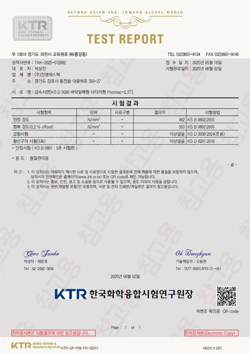 포스맥 2.0T 인장강도